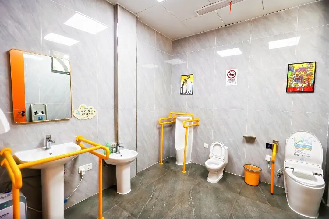 面对社会老龄化趋势与市民多元化如厕需求,上海将“环卫公厕适老化适幼化改造”作为重要民生工程,自2023年将此纳入市政府实事项目以来,三年累计完成改造2600余座,超额完成目标。改造中坚持“分层分类、全龄友好”原则,聚焦“通行安全、助力行走、自主如厕、服务优化”四大类30项细节进行系统升级。通过为老年人加装无障碍扶手、铺设防滑地砖、优化照明,为儿童设置低位洗手盆、儿童坐便器、加装防撞护角等举措,显著提升了“一老一小”群体的如厕安全性与便利度。