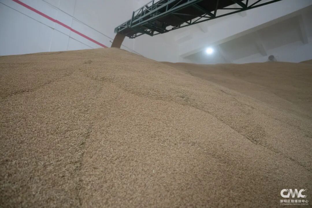 稻谷飘香,丰收满仓。最近,崇明水稻陆续迎来大面积收割,秋粮收购储备工作也在有序推进。跟着记者一起去现场看一看。 在城桥镇的崇明区粮食储备中心库,一辆辆满载稻谷的卡车鱼贯而入,在完成扦样检测,通过地磅称重后,到指定区域开始卸粮。随着车斗抬升,闸口随即打开,金黄色的稻谷随着传送带进入仓库。据工作人员介绍,一辆卡车可运载约20吨稻谷,高峰时期一天可入库近1000吨。仅一早上的功夫,仓库内已垒起一座座“粮山”。 在化验室内,工作人员借助各种仪器设备,对稻谷样本进行详细检测记录,做好入库秋粮的品质“把关”工作。对于入库的稻谷,工作人员会检测水分、杂质、出糙等指标,确保入库的粮食符合储备粮的标准。 “这两天,秋粮收购已全面开始,全区共设置24个收购站点。储备粮都会录入智慧粮库系统,确保相关数据得到实时监测。我们能直观看到储备粮的粮温、湿度及病虫害等情况,确保粮食安全。”上海崇明粮油管理有限公司党支部副书记、副总经理刘砚介绍。 据悉,崇明区粮食储备中心库共包含12座平房仓、仓储能力近4万吨。库内安装监控摄像头和粮温传感器,通过粮情监测系统、视频监控、大数据分析等技术,对储备粮实现远程监管。同时,应用光伏发电、智能通风、智能控温等绿色储粮技术,实现绿色储粮仓容覆盖率和绿色低温储存效果覆盖率100%。 记者:施昊豪 摄影:张志豪