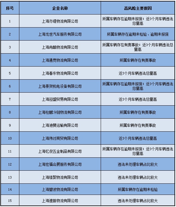 今天,嘉定交警发布10月全区高风险“两客一危一货”企业曝光名单,以此督促相关企业落实主体责任,尽快消除所属车辆、驾驶人道路交通违法行为,保障道路通行安全。
