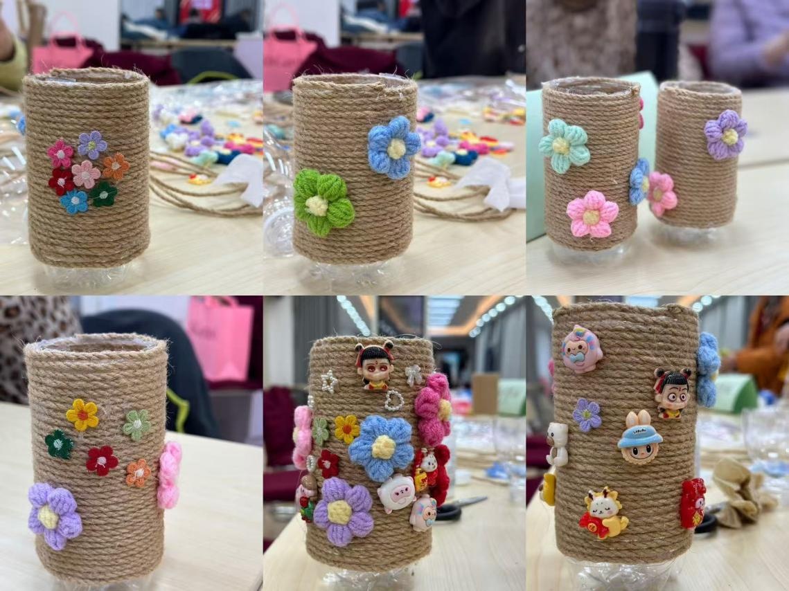 现场充满了欢声笑语,一个个普通的塑料瓶在居民们的手中渐渐变成独具匠心的笔筒、花瓶。