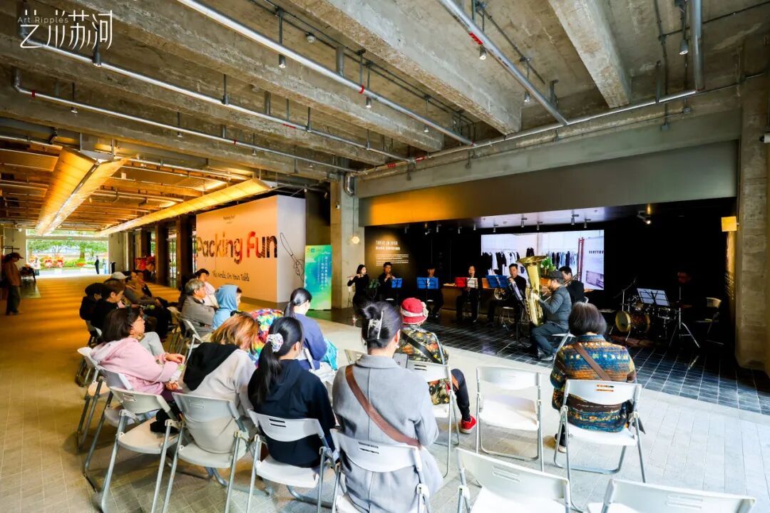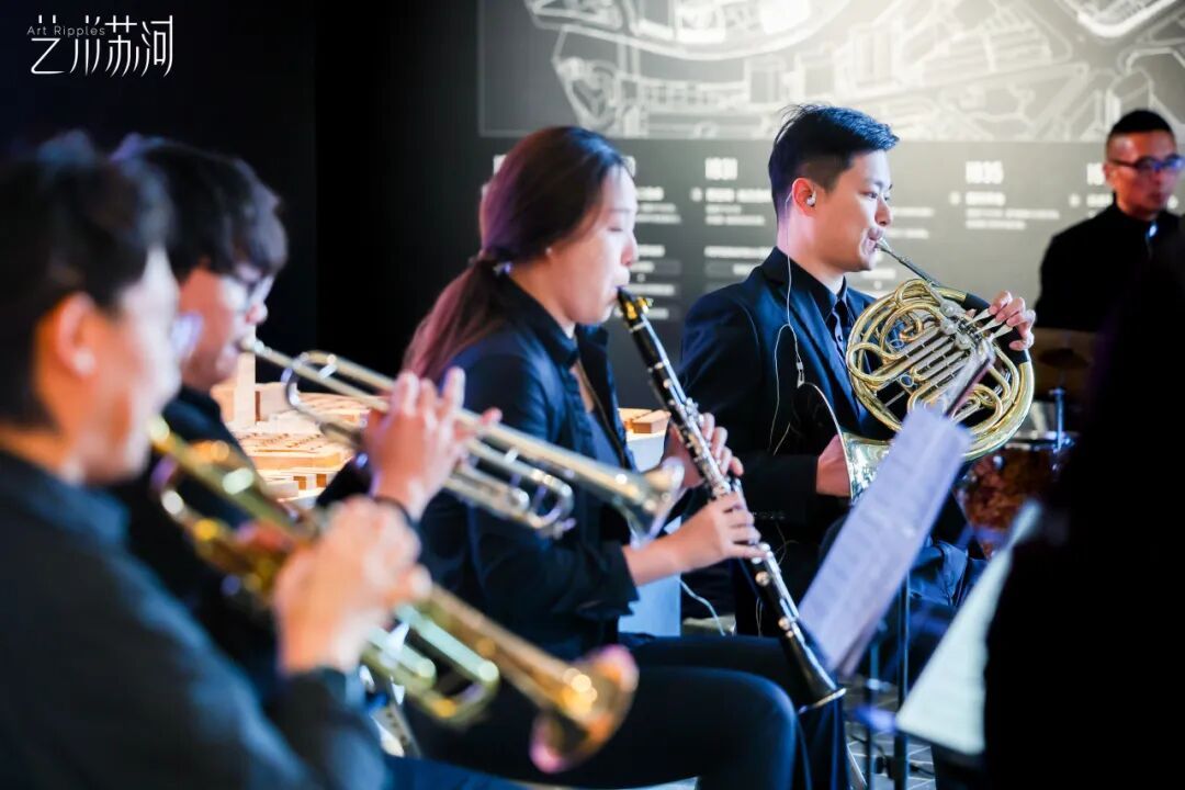 在“艺术苏河”启幕之际,区文化旅游局特邀“铜乐工坊Brass Ensemble”带来《迪士尼经典电影配乐—铜管八重奏音乐会》。演出现场,《狮子王》《冰雪奇缘》等经典旋律在空间中回旋流转,历史空间的厚重质感与现代艺术的灵动气息在此完美交融,音乐声波与建筑肌理产生奇妙共振,为观众打造了一个融合听觉、视觉与空间感的沉浸之夜。