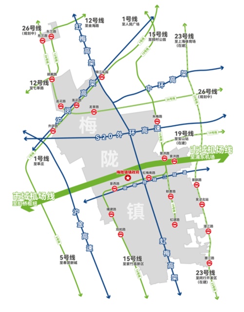 梅陇镇“7线21站点”轨道交通示意图(仅作示意)