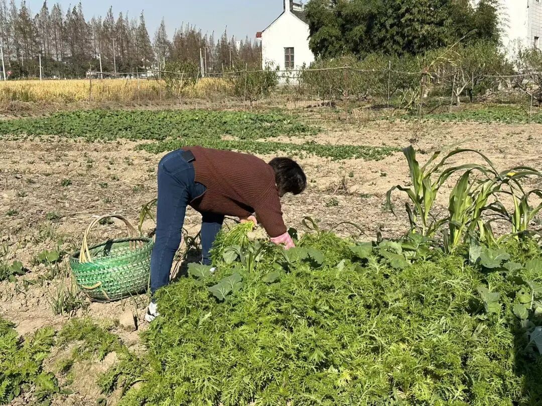11月21日上午,记者走进立新村,村民周阿姨正在田间采摘青菜。刚摘下来的青菜带着白霜,周阿姨用井水仔细冲洗干净后,便快步来到厨房。她一边麻利地切菜,一边往土灶里添柴,“菜饭好不好吃,这霜打的青菜可是关键。我用自家种的青菜,没打过农药,现在霜打了以后又甜又糯。”