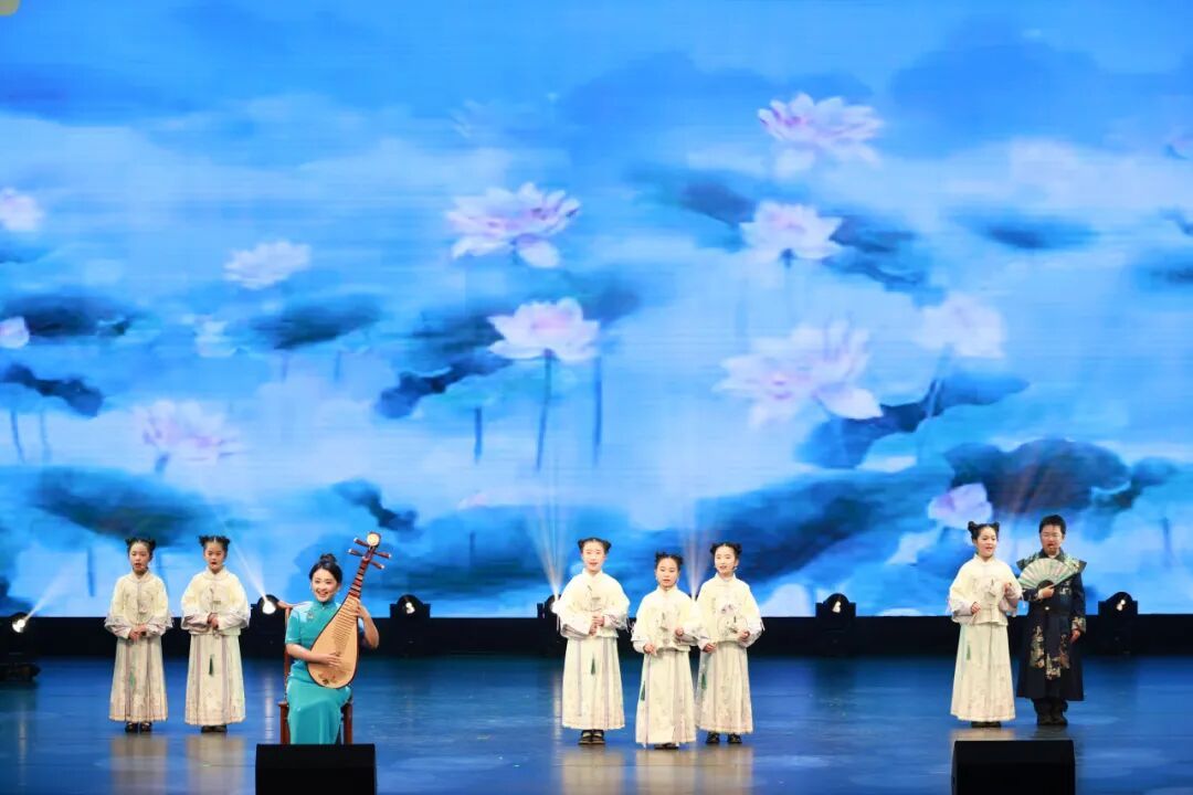 《织春》《涧水悠然》《龙游湖畔》等舞蹈作品从江南文化与自然意象中汲取灵感,在上海歌舞团的创作辅导下,用当代舞蹈语汇传递传统美学的深意。大桥街道的小品《指尖上的彩虹》以幽默叙事呈现社区治理成果;平凉路街道与上海评弹团合作的《诗韵江南》则以婉转声腔勾勒江南气韵,引人入胜。