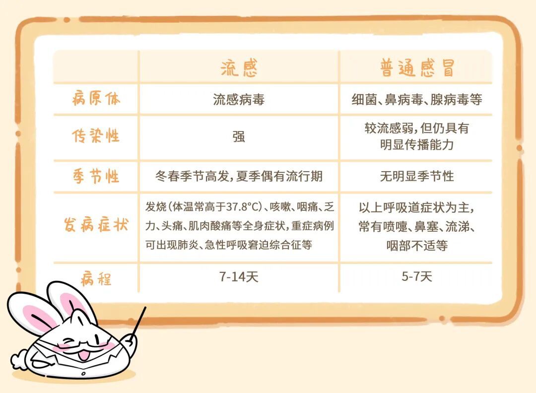 流感相较于普通感冒传染性比较强、传播比较快,且症状较普通感冒重。流感来得快,发烧猛,浑身疼得像被地铁门夹过,从发病到恢复整个过程通常要1周以上。