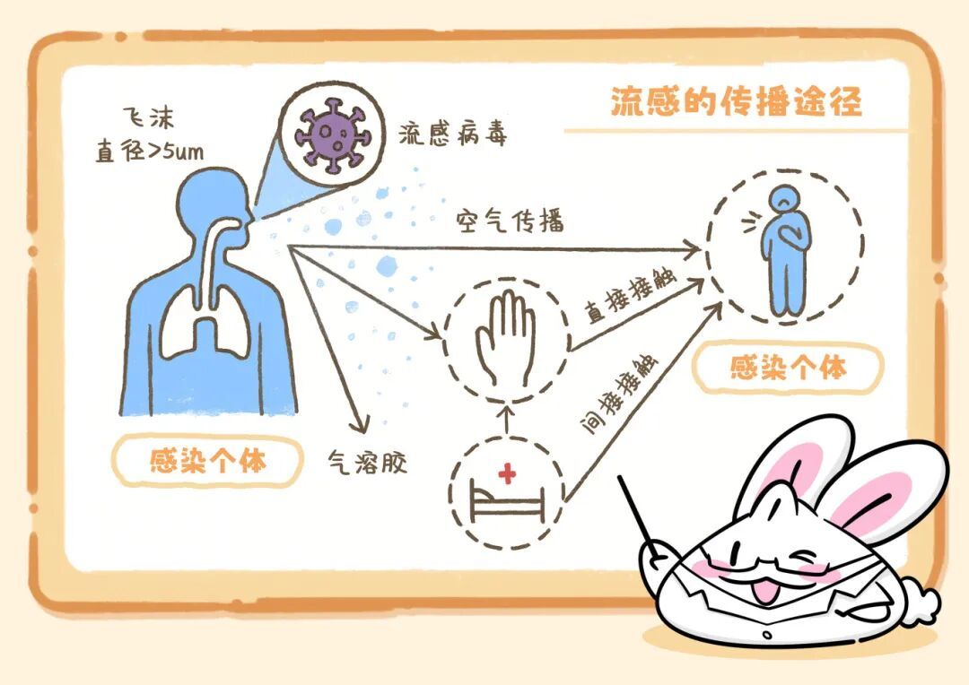 为避免“中招”流感,需要做好个人防护。那如何做好个人防护?我们首先要了解流感病毒是如何传播的↓