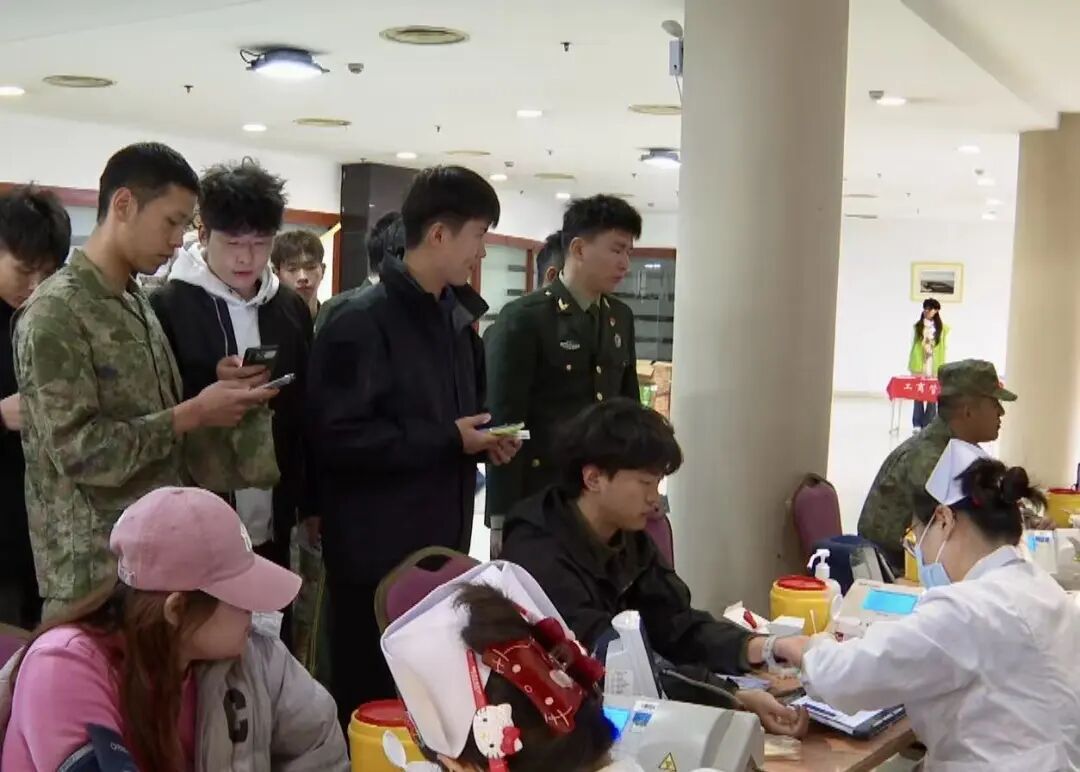献血现场爱心涌动,退役大学生士兵们保持着部队的优良作风,整齐排队、有序配合。在工作人员和志愿者的引导下,他们依次完成信息登记、血液检测等流程。