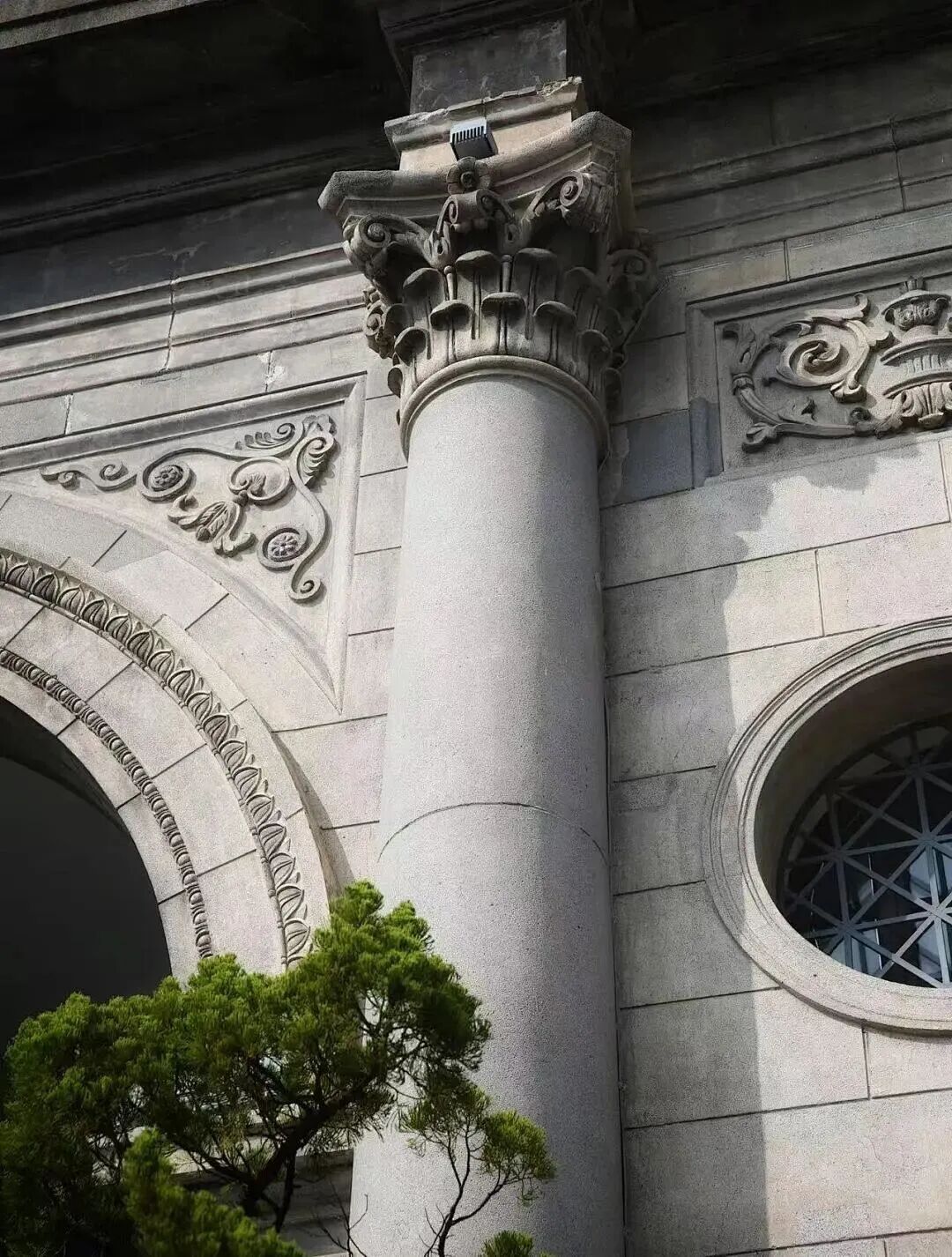 后半程会经过北苏州路470号的上海总商会大楼,匆匆一瞥也很惊艳。主入口门楼,仿罗马梯铎凯旋门,拱形门洞旁有两根花岗岩科林斯立柱,柱头花草卷涡立体感很强。这里曾是上海商界地标,孕育了多个“第一”。