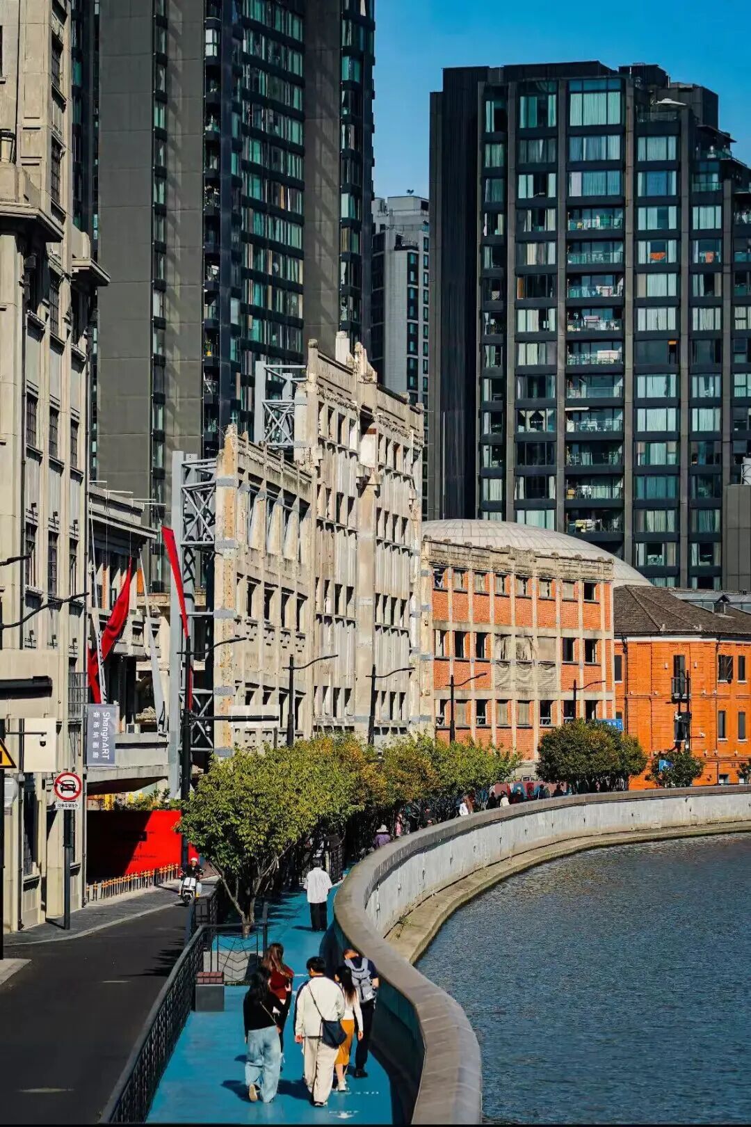 近年来,北岸不少文化艺术空间改造更新,全程几乎都有不错的绿化设计和亲水步道,骑行体验愉悦。