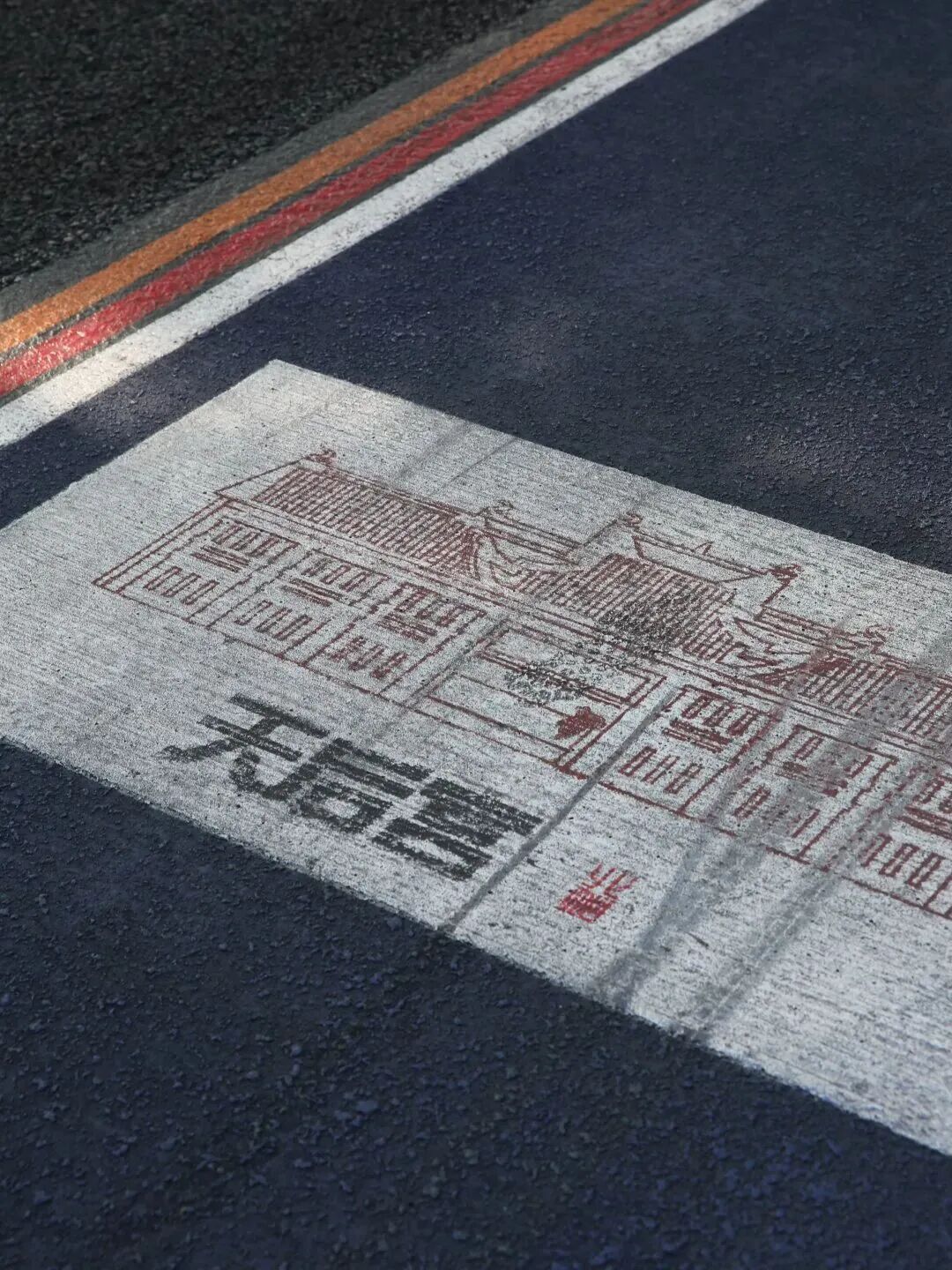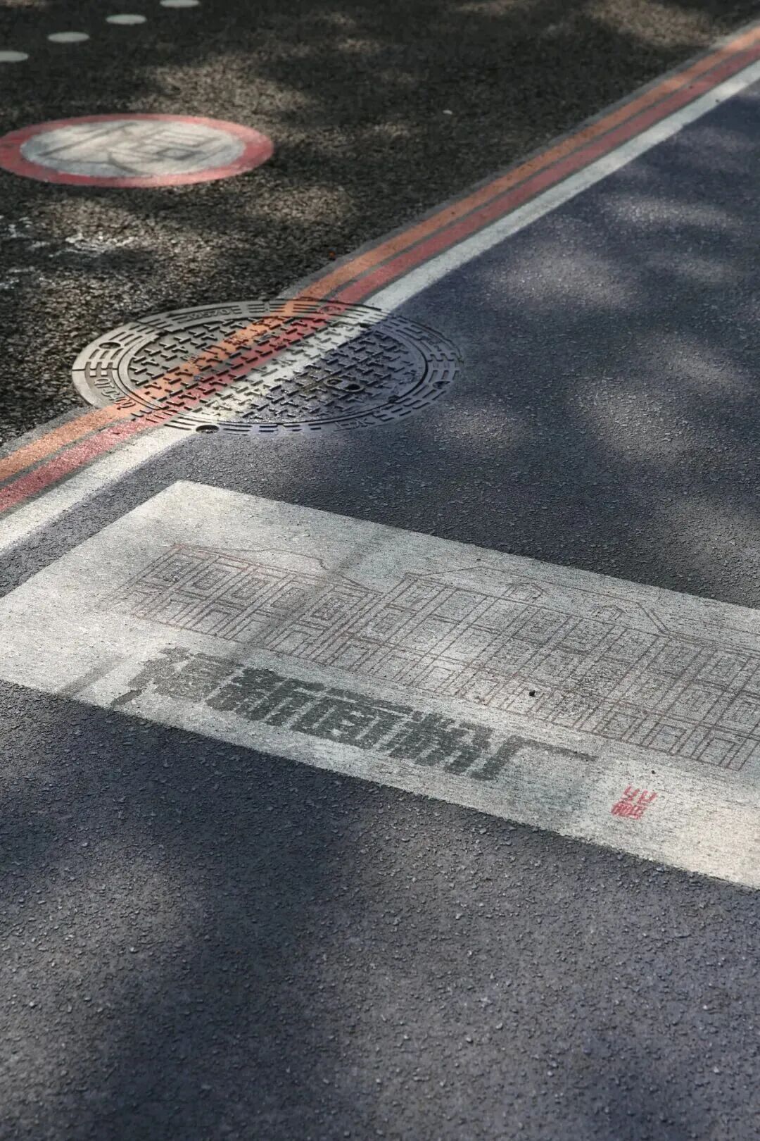 有意思的是,骑行道其中一段还印有沿途的重要地标,赏心悦目的同时,也是非常“落地”的参观指南。