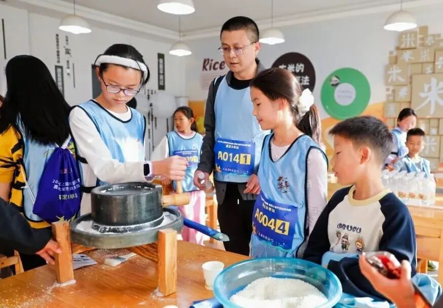 在最富农趣的“粉‘磨’登场”活动中,亲子协作推动传统石磨,用亲手磨出的米粉拼出“爱在华亭”字样。最后在“稻谷归仓”终点站,孩子们化身成小小农人,小心翼翼地操控遥控运粮车,体验丰收的喜悦。