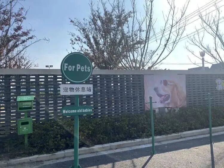在宠物友好咖啡店的后面,是一座宠物友好公园。林间小道旁,彩绘的狗狗印象增添了萌宠元素,自行取用的宠物拾便袋让游客在携宠游玩时加深文明养宠的理念与意识。