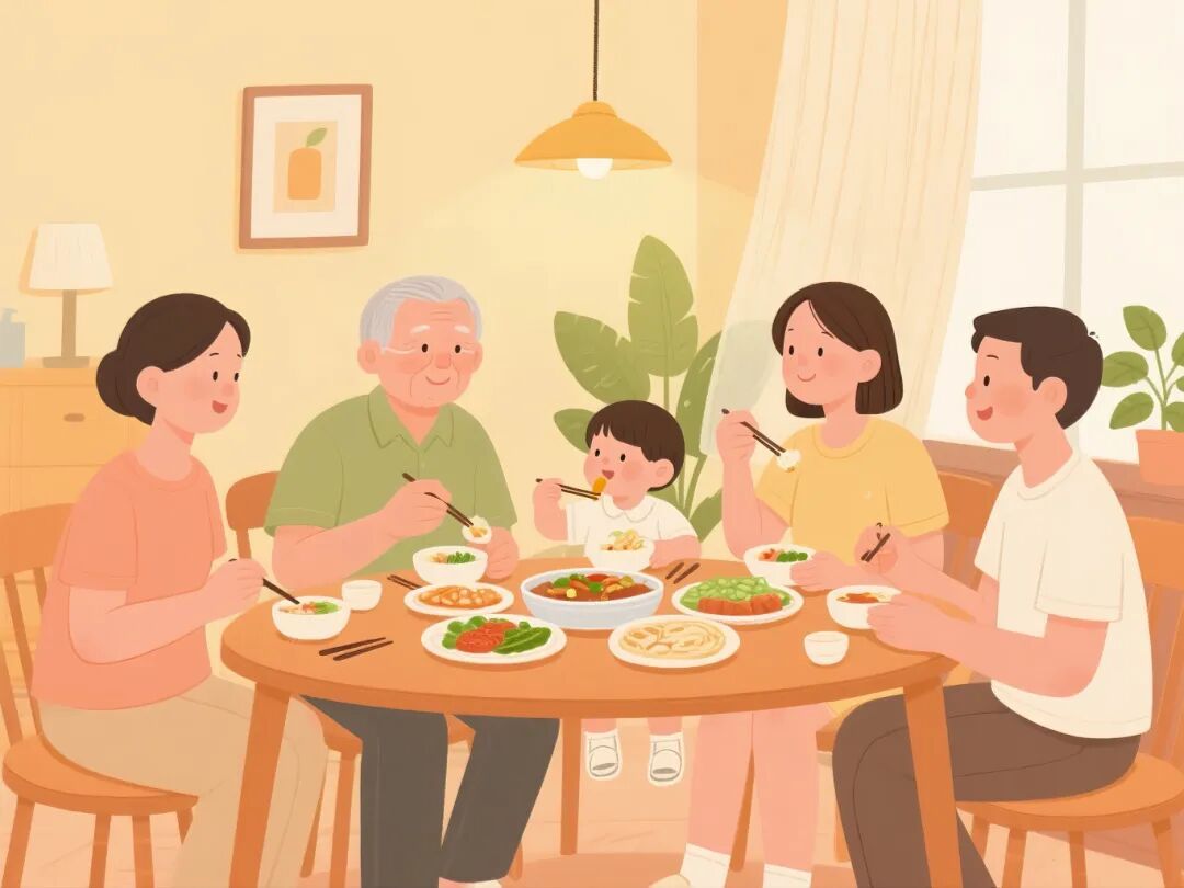 和家人一起吃饭更开心,老年人可以力所能及地参与饮食制作,融入家庭生活,有助于增进食欲,多吃一点哦!