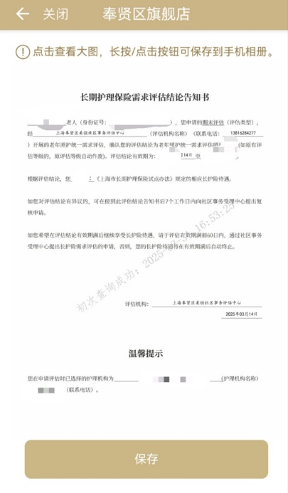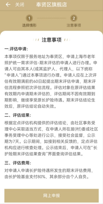 其中,“长护险期末评估”服务实现长护险期末评估在线申请、期末评估结果查询、长护险告知书打印一站式服务。不出家门即可线上一键办理,“零跑动”“零材料”,政务服务更贴心,失能老人更安心。点击“期末评估申请”,进入情形引导,可以选择“本人申办”或“代办办理”,完成表单填写,点击提交后,再点击“长护险结果查询”保存下载长护险告知书。