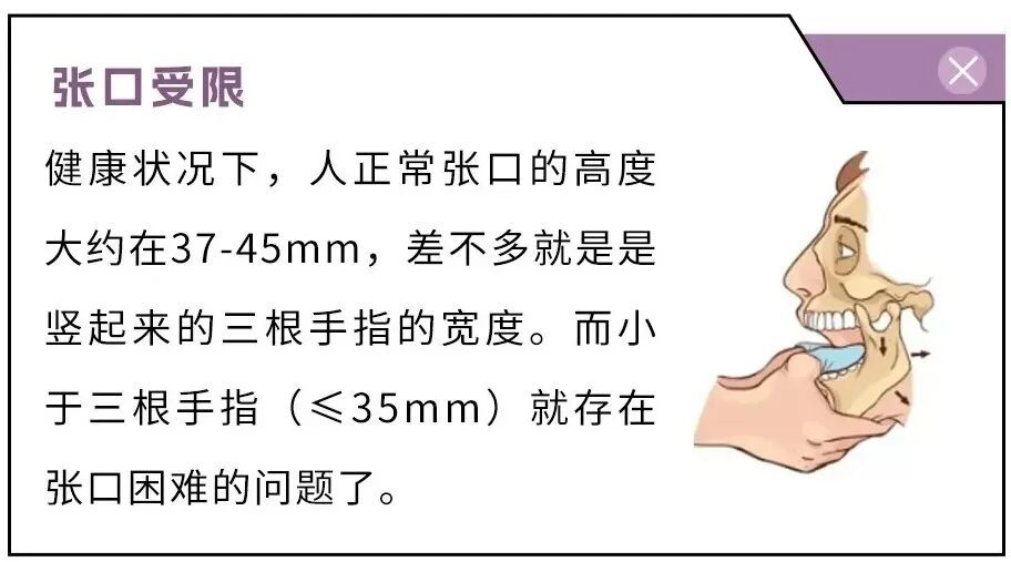 ■要是1根手指也放不进去,张口困难就已经很严重了。