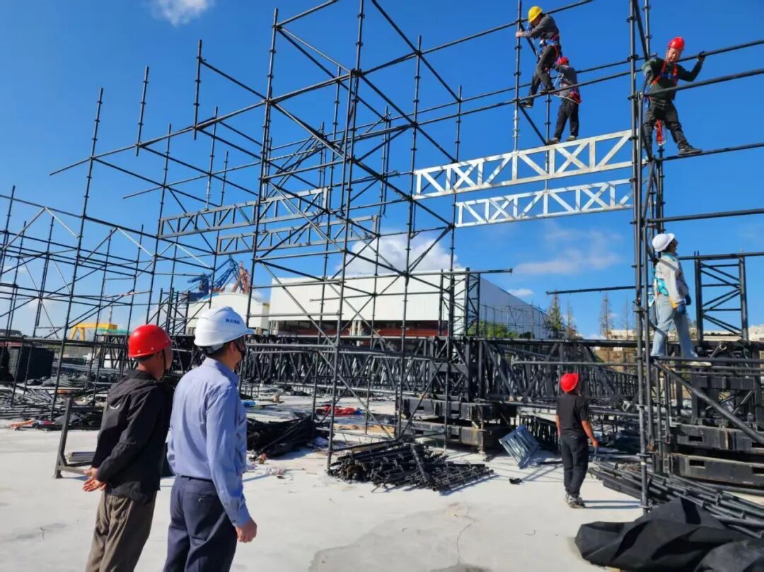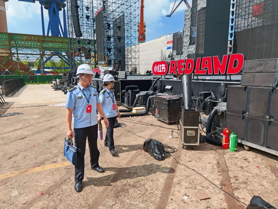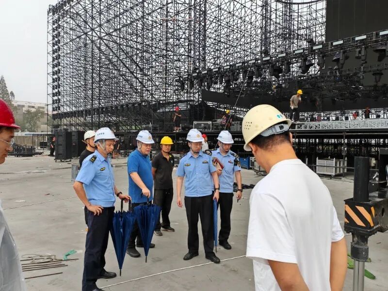 邀请市应急局执法总队领导会同专家组,综合运用理论知识和实践经验,进行了多轮细致检查,精准指出问题隐患所在,帮助施工单位分析问题根源,为企业量身定制科学可行的整改方案。在活动主办方出具舞台检测报告的基础上,由区应急局聘请权威机构对舞台安全开展第二轮专业检测,为舞台结构安全加上“双保险”。