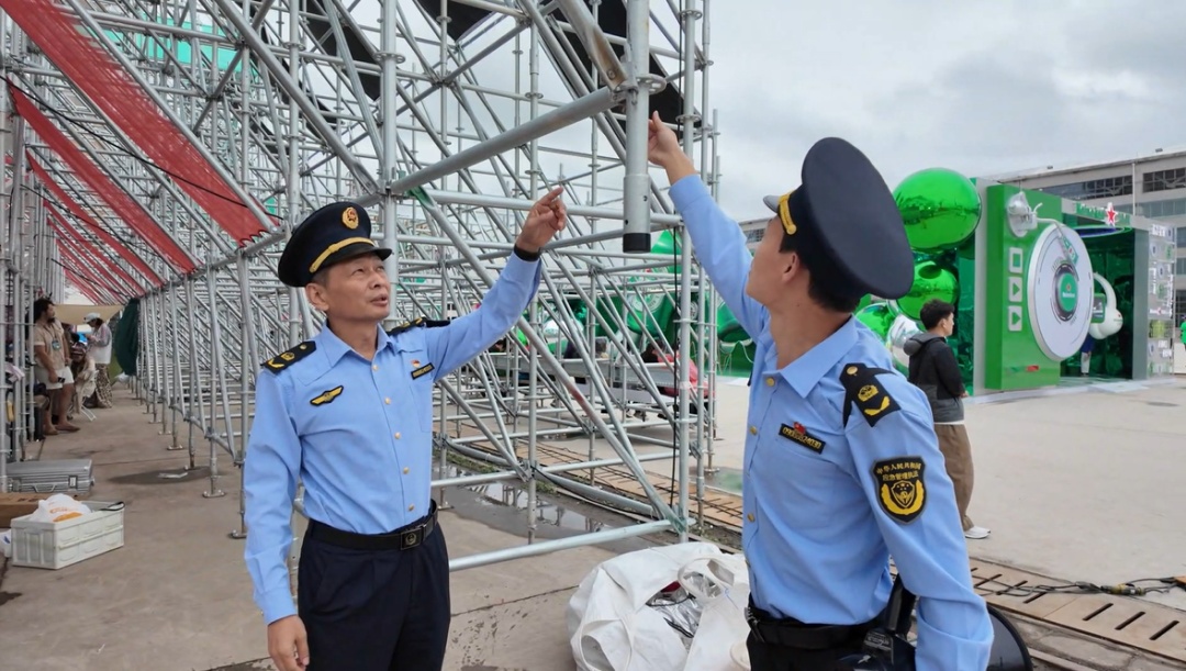 活动布展期间,安全隐患排查尤为关键。区应急局会同各相关单位,坚持每日开展安全检查,紧盯高空作业、动火用电、危化品管控等关键环节,严查安全防护措施不规范、安全警示标志缺失等问题。