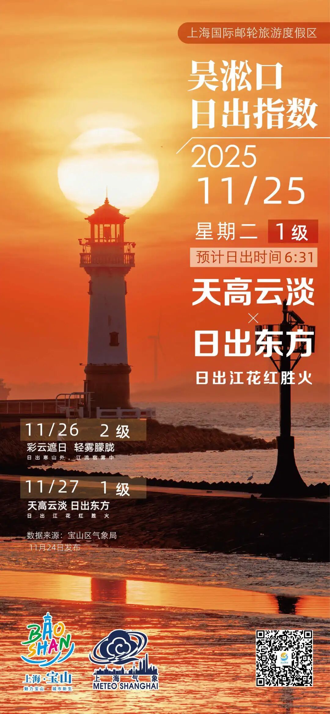 【吴淞口日出指数】11月25日1级 天高云淡×日出东方