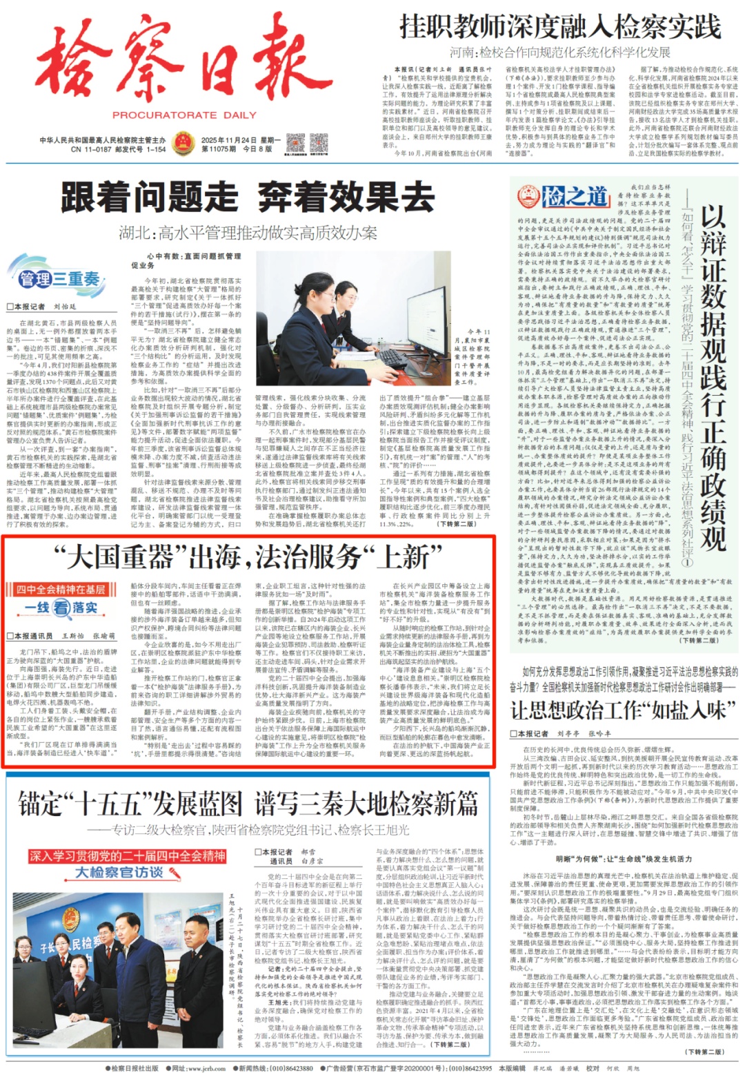 从随时响应的检察工作站,到针对企业需求持续更新的法律服务手册,再到为海装企业量身定制的法治体检工具,检察机关不断推出的实招、硬招为“大国重器”出海筑起坚实的法治护航线。