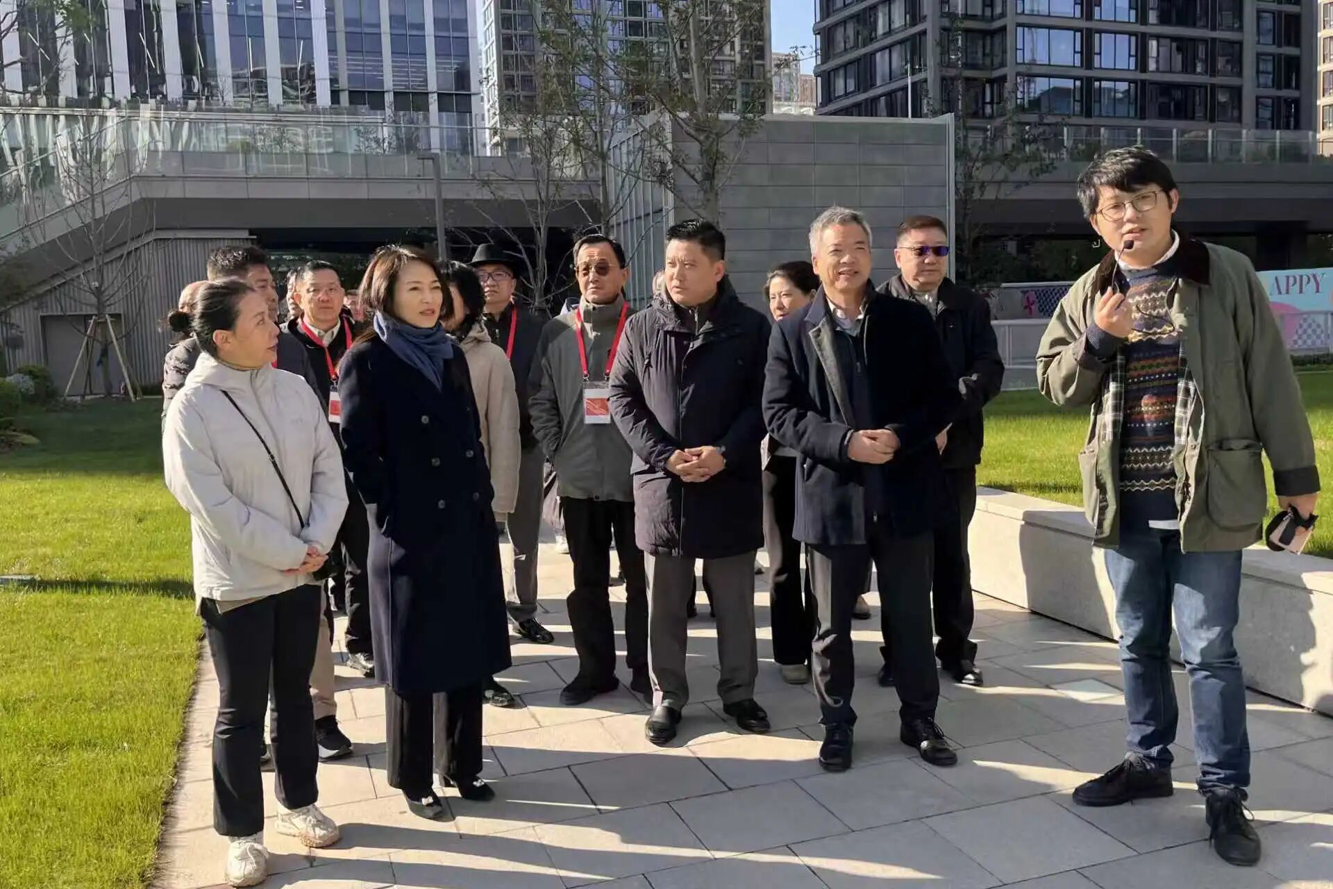随后,代表们分两组前往新天地东台里开展实地视察。该项目于2025年9月29日焕新亮相,以“街区+盒子”式开放格局融合多元业态,引入北面亚太首家会员中心等高能级品牌及特色空间。代表们先后参观了碳中和中心、项目整体展示区、中庭穹顶及“燃冉”艺术空间等区域,详细了解项目规划建设、业态布局、文化融合及运营发展情况。