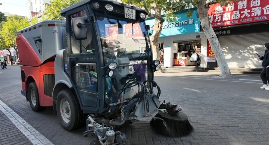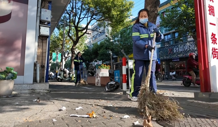 清晨的八一路寒意袭人,环卫工人早已手持扫帚开始第一轮落叶清理。与此同时,机械化洗扫车沿路缓缓行进,将路面落叶高效吸除,迅速恢复道路原貌。在梧桐密集路段及樟树较多的主次干道上,“人工+机械”协同作业的模式已成为落叶季的常态。