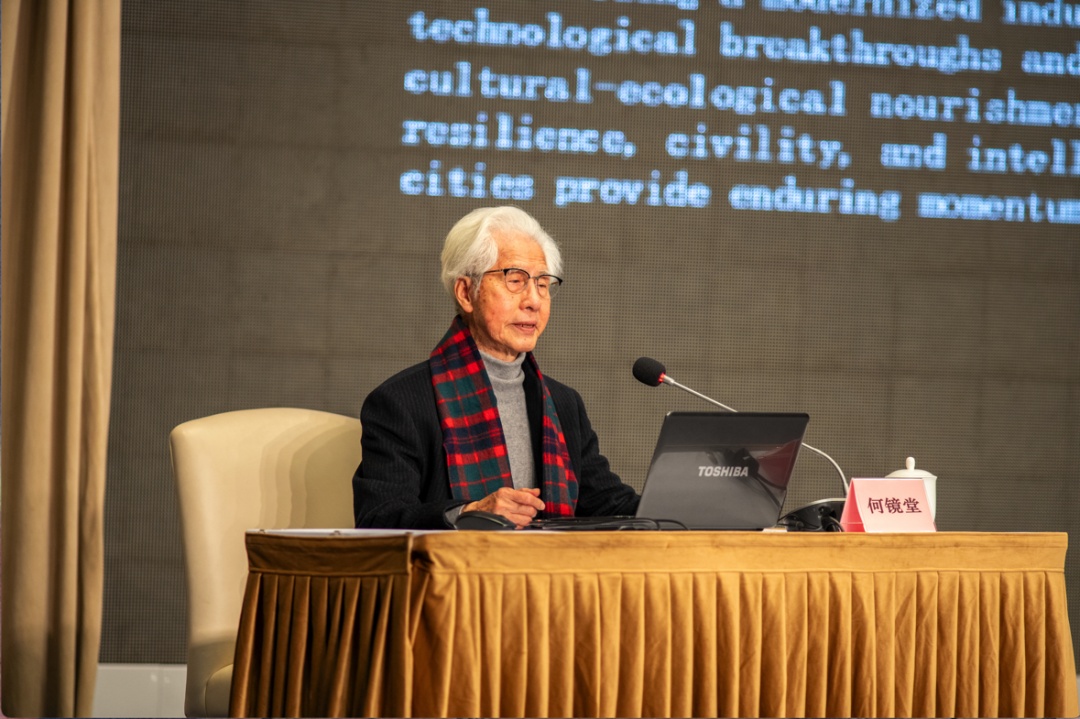 立足当下,何镜堂指出,当前我国城市发展面临从“增量扩张”向“存量提质”转型,从追求规模扩张转向注重内涵式发展。在此背景下,城市建设应转向以创新为动力、以人文为底色、以生态为根基的系统性变革。他提出,现代化城市建设应着重完善新型基础设施体系,培育创新生态系统,构建“设计—内容—运营”一体化模式,践行生态环境治理与“三生融合”的可持续发展路径。他认为,建设更具国际竞争力的现代化城市,不仅需要技术突破与制度创新,更需要与之匹配的城市空间支撑与人文生态滋养。唯有将“创新、宜居、美丽、韧性、文明、智慧”的理念融入城市规划建设全过程,才能为有中国特色的现代化城市提供发展的持久动力。