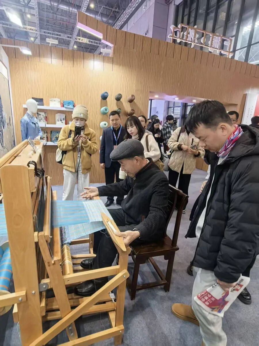 市民现场体验松江织造技艺