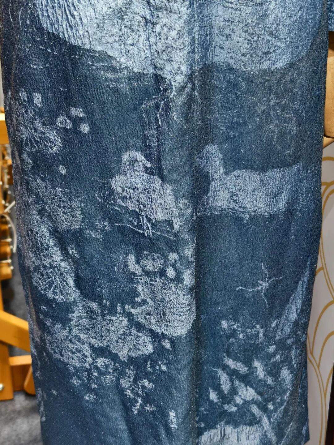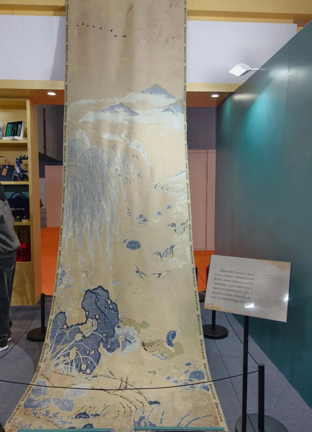 如何让这件宋代艺术瑰宝“活”在当下,走进现代生活? 就在朱克柔的故乡松江,上海鼎天提花博物馆团队利用人工智能深度学习技术,对画作中的水波、绒羽、花卉等细节进行像素级解析,并“翻译”成精准的织造数据,最终人工设计构建出包含6.66亿个像素点的“数字基因库”。在此基础上,采用五米一体织造工艺,以1197个丝线色阶还原墨色层次,实现了“以线作画,以织为笔”的技艺突破。