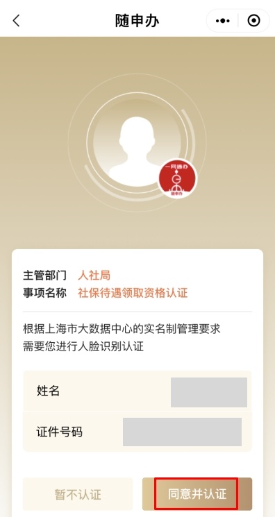 点击“同意并认证”,按提示进行人脸识别操作,请注意由需认证人员本人刷脸操作。