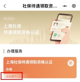 点击“上海社保待遇领取资格认证办理”下方“去办理”,进入认证流程。