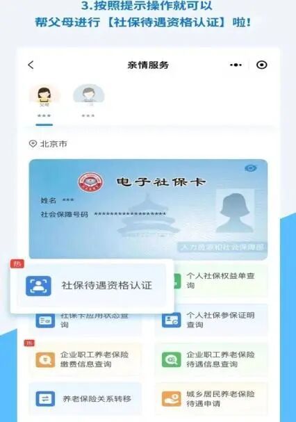 子女也可以在亲情服务页面,按照提示为父母协助认证。