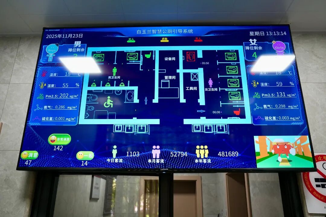 走进“白玉兰公厕”,其外部设计令人眼前一亮。建筑以上海市花白玉兰为核心灵感,搭配中式窗棂作为点缀,既勾勒出自然灵动的线条美感,又与周边的白玉兰广场景致浑然一体。外墙采用的竖向木条隔断设计不仅自带自然质朴的气质,更兼具实用价值,既能促进空气流通,有效减少异味积聚,又能引入充足的自然光线,让公厕内部始终保持明亮通透,为市民营造出舒适的如厕环境。 相较于亮眼的外观,公厕内部设计更具人性化。由于地处青浦城区白玉兰广场,这里日常人流量大、人员密集。对此,公厕通过科学配比男女厕位数量,有效缓解了高峰时段的使用压力。针对不同群体的多元需求,公厕设置了第三卫生间,内部配备儿童小便器、专用坐便器、高低洗手台、母婴护理台以及儿童座椅等设施,同时为行动不便人群安装了无障碍扶手,全方位兼顾老人、儿童、母婴等群体的使用需求。 除了人性化设计,智能科技的融入让这座公厕“锦上添花”。大厅内的“智慧引导屏幕”实时更新温湿度、空气质量指数、当前客流量、服务评价等各类信息,市民只需扫一眼就能清晰掌握各厕位的使用状态,避免无效等待。管理人员也可通过屏幕实时监控厕位占用异常情况,及时排查安全隐患,防范意外发生。此外,智能新风系统、高效排风系统、智能导厕服务、自动驱虫装置等一系列智能设施的配备,加之电子控制的厕位开启方式,让市民的如厕体验更便捷、更安心、更舒适。 优质的体验离不开细致的服务保障。“白玉兰公厕”实行18小时不间断保洁制度,所有管理人员上岗前都经过严格的专业培训,确保服务规范、卫生达标。日常保洁采用“跟踪式清洁”模式,记者在现场看到,每当有市民使用后,保洁人员都会及时对洗手台、地面等关键区域进行清洁,始终保持公厕的整洁卫生。