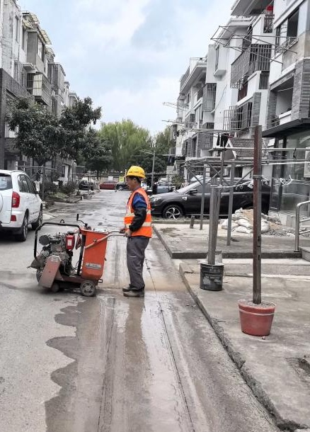 泰安公寓小区(一区):已开展路面切缝作业,施工过程中严格把控切缝深度与宽度,确保符合施工标准,为下一步管道改造打下基础。