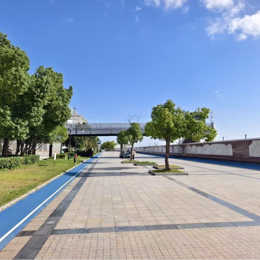 由于这里地理位置独特,市民在步道锻炼后,还能顺便感受吴淞口的江风海韵,让生活更加惬意。
