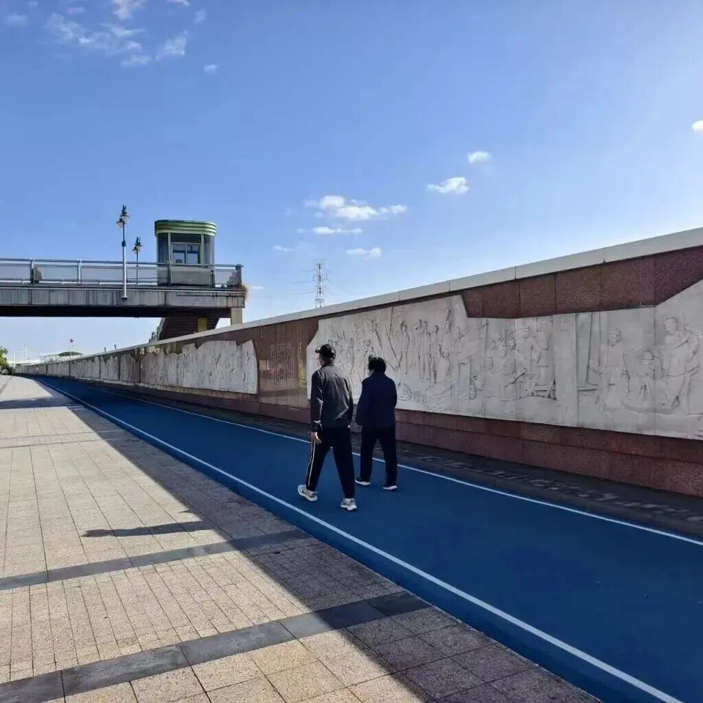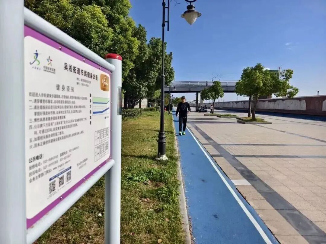 淞浦路健身步道的西端位于班溪路以东100米左右,向东延伸200米,在淞浦路的南北两侧各有一条步道,长度累计400米。这条健身步道最早是2012年建成的,经过多年使用后设施老化严重,健身步道出现了较多的裂缝。今年10月份,宝山区体育局、吴淞街道对淞浦路健身步道进行了更新改造,加固了步道的基础,并“换装”了全新的蓝色塑胶路面,全面提升了健身步道的颜值和舒适度,为吴淞新城等小区的居民就近健身提供了更好的条件。