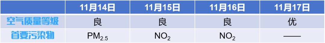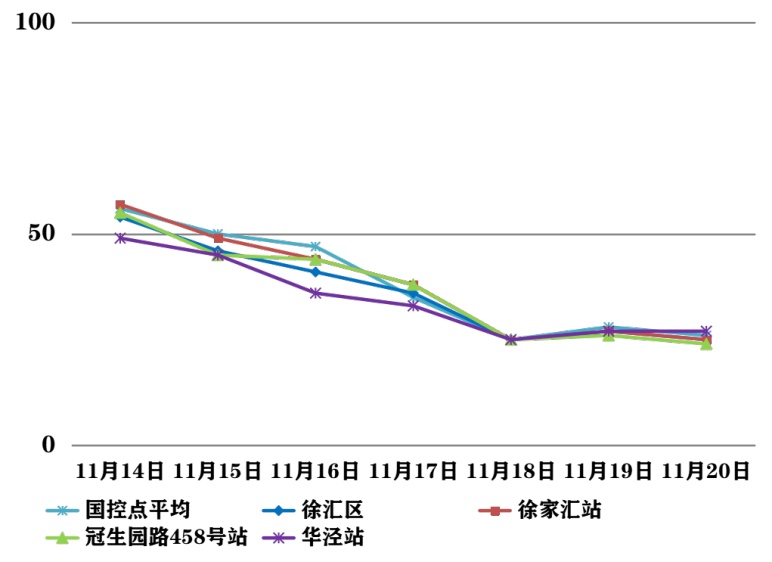 11月14日—11月20日,徐汇区大气环境质量报告如下所示: