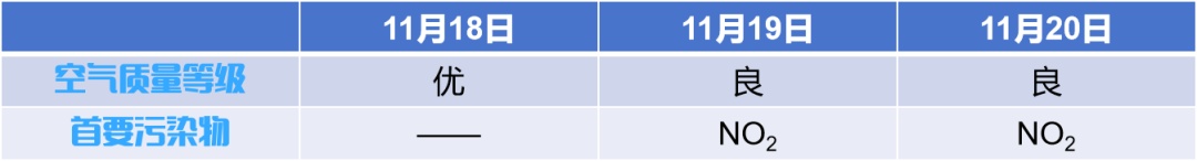 11月14日—11月20日徐汇区空气质量等级及主要污染物: