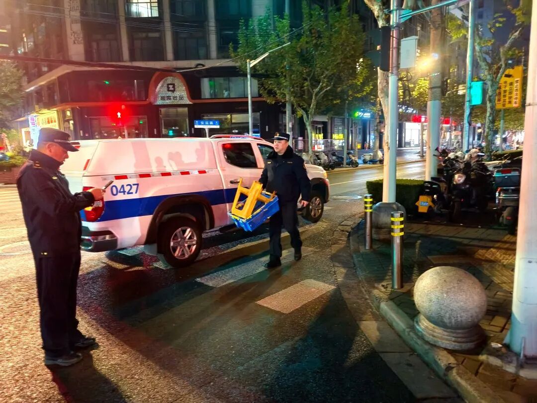 石门二路中队通过定点值守和动态巡查相结合,持续优化辖区夜间市容环境;芷江西路中队探索设置临时便民疏导点,既方便市民消费,又维护了周边秩序;曹家渡中队则利用街道全域门责“码上办”数字化治理系统,加强部门协作,形成长效管理机制。
