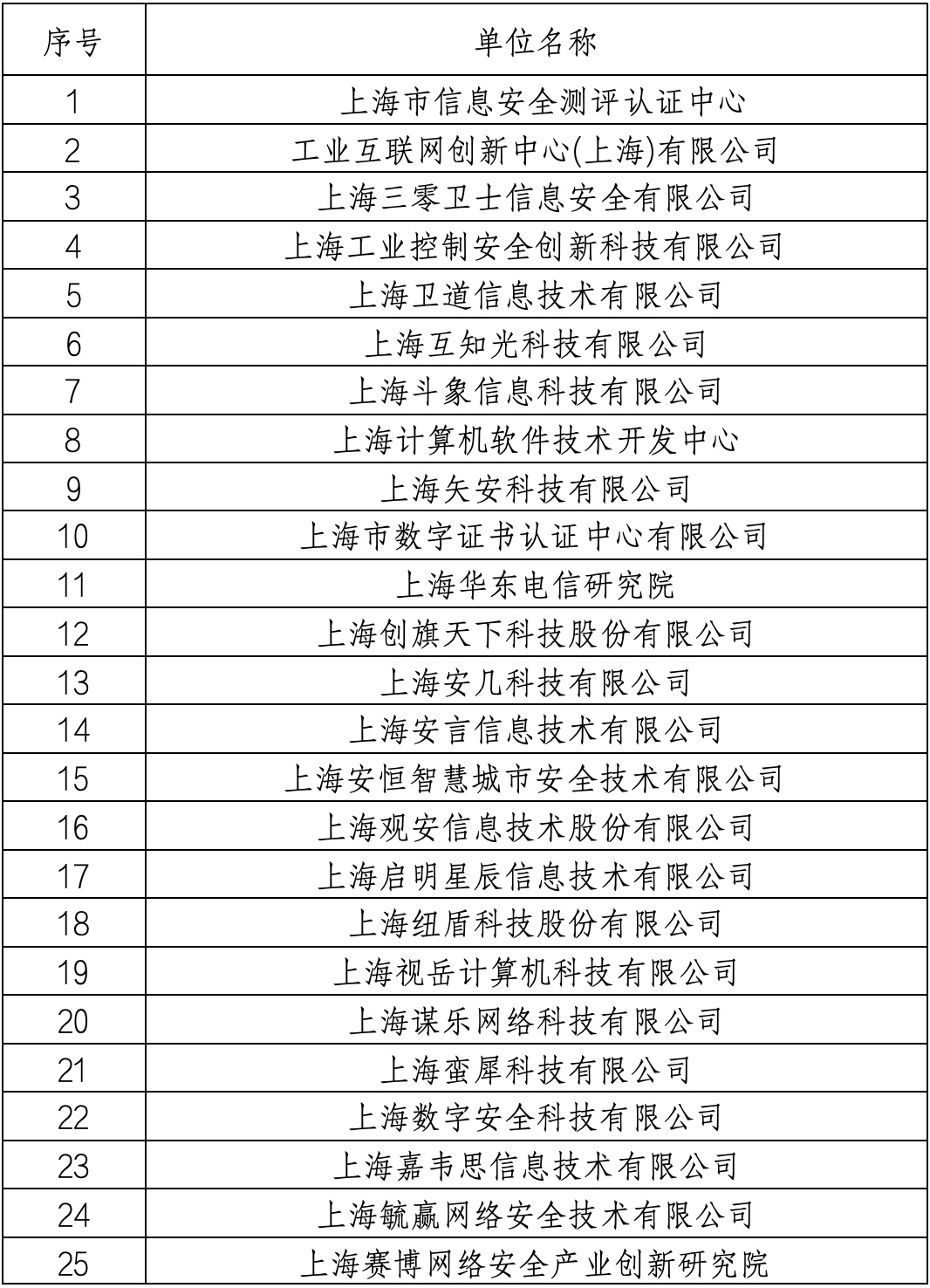 上海市经济信息化委2025年网络和数据安全支撑单位名单公示