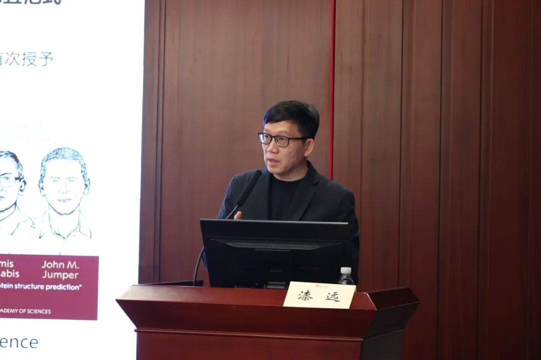 在专题报告环节,马大为院士以《小分子抗肿瘤药物研发》为题,讲解当前药物研发的新范式和新技术;孔元中处长以《当前上海医疗卫生系统专利转化运用工作的基本脉络和主要任务》为题,分析了医疗卫生机构成果转化工作中的重点环节和发展机遇;漆远教授以《AI医药应用与发展》为题,阐述了复旦大学AI for Science战略的整体布局和医学科创工作中AI的实践应用。