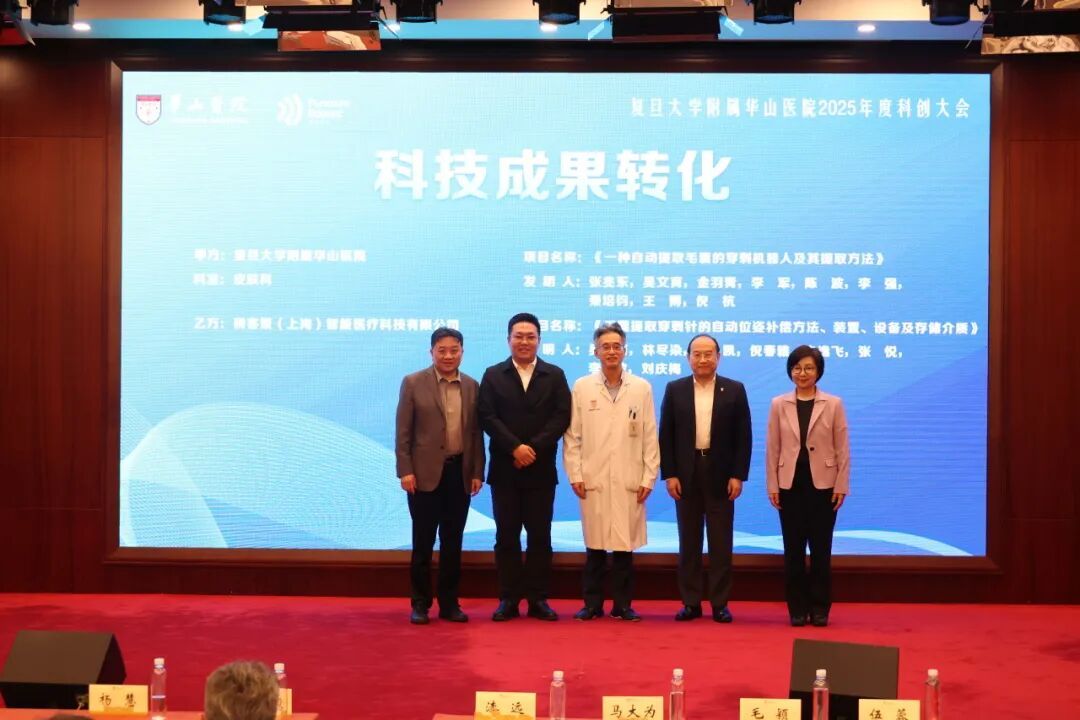 科技创新与产业发展相辅相成,缺一不可。会议现场,院领导感谢4家对华山医院成果转化、临床研究工作给予积极支持并取得突出成绩的企业伙伴,并与发明人代表、企业代表合影留念。