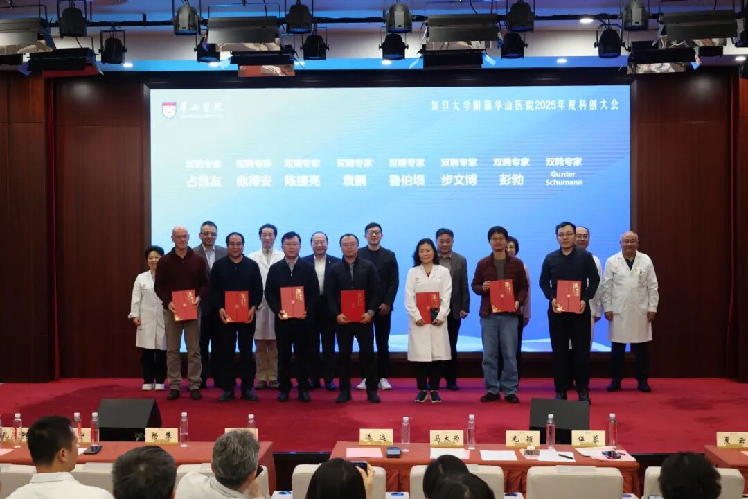 2025年,华山医院在科技项目、成果转化、GCP项目、IIT项目等方面取得一系列成绩。37位在2025年度科研项目、人才计划、创新团队、成果转化、药物临床试验、临床研究中表现突出的医院科研工作者和双聘专家获得表彰。郑宁书记、毛颖院长宣读获奖名单,医院党政领导班子及嘉宾共同为获奖者颁奖。