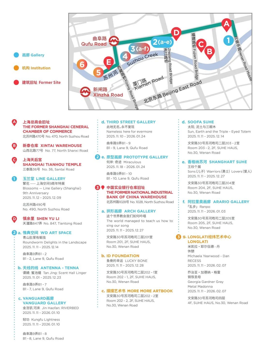 这里,艺术空间与历史建筑旧址比邻而立,共同编织着城市的文化图景。我们将穿梭其间,深入探访河畔的艺术现场,于脚步间感受上海本土文化蓬勃的生命力。