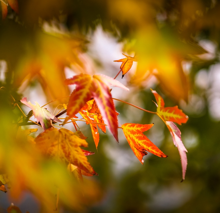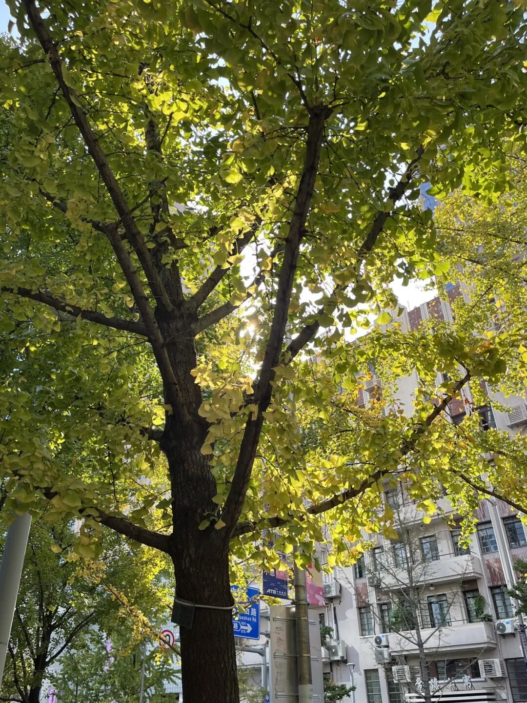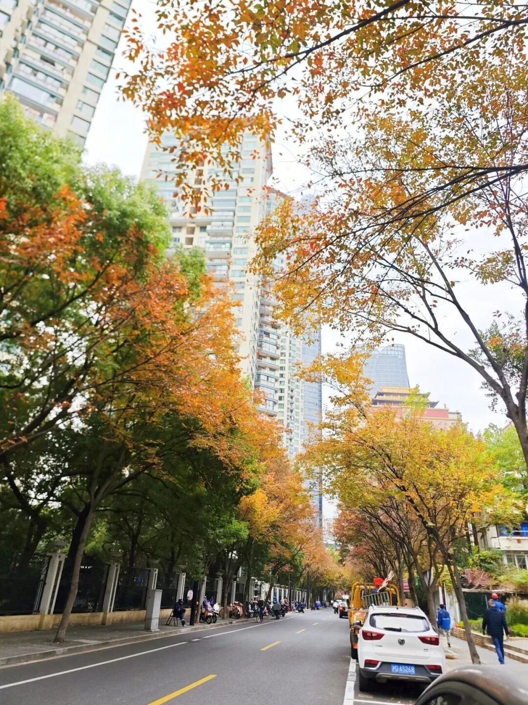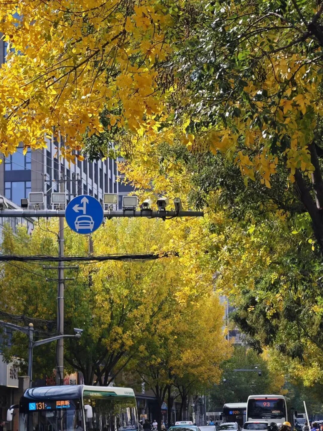 银杏披上鎏金战袍,北美枫香披上橘红霓裳,栾树则悄悄挂起小灯笼,与淡黄的叶子共舞——这不是画展,是城市街道的自然艺术展。