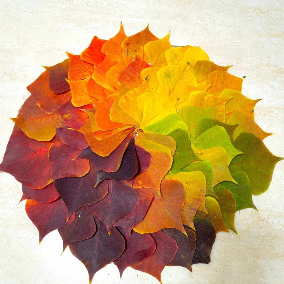 2. 落叶拼图:可以用各种类型的落叶,比如银杏,悬铃木来创作不同的有趣图案。打开你的脑洞,创作你的秋日微艺术吧!
