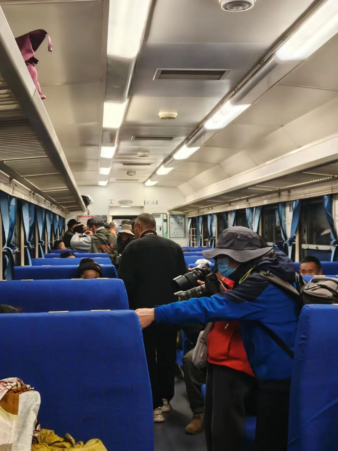 11月22日,发帖人刘女士告诉记者,11月18日,她乘坐5633次列车从普雄镇普雄站上车,随后她看见了一队大约有二三十人的中老年旅行团,一人手里拿着一台拍摄装备,刚刚上车就开始到处拍照。