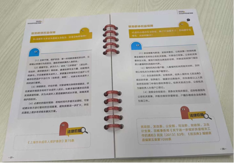 另一大突破则是《社区法律事务通关秘籍(2025版)》的升级。这本被学员称为“社区法律宝典”的手册,在去年35问基础上扩充至40余问,涵盖邻里纠纷、涉外矛盾、公共空间管理等常见问题。随着外籍居民增多,社区工作者面临的涉外咨询日益频繁。在区委社会工作部和区司法局的支持和指导下,新版秘籍强化了破解社区治理难题的法条支撑,明确列出每一项解决方案的法律依据,让社区工作者“调解更有底气”。华东理工大学教授唐有财在点评中指出,面对政策专业化、技术变革和居民多元化的新挑战,社区工作者必须从“热心肠”向“法治脑”转变,提升依法治理能力。