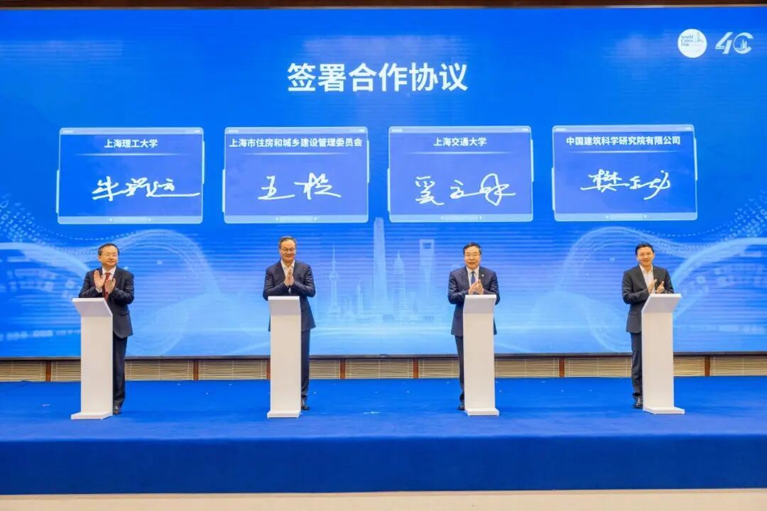 大会现场,上海市住房和城乡建设管理委员会还与上海交通大学、上海理工大学、中国建筑科学研究院有限公司签署战略合作协议,按照“资源共享、优势互补、长期合作、互利互赢”的原则开展多层次、多领域、多形式的深度合作,标志着行业创新链与教育链、产业链的精准对接,将进一步推动科技成果转化与人才联合培养。