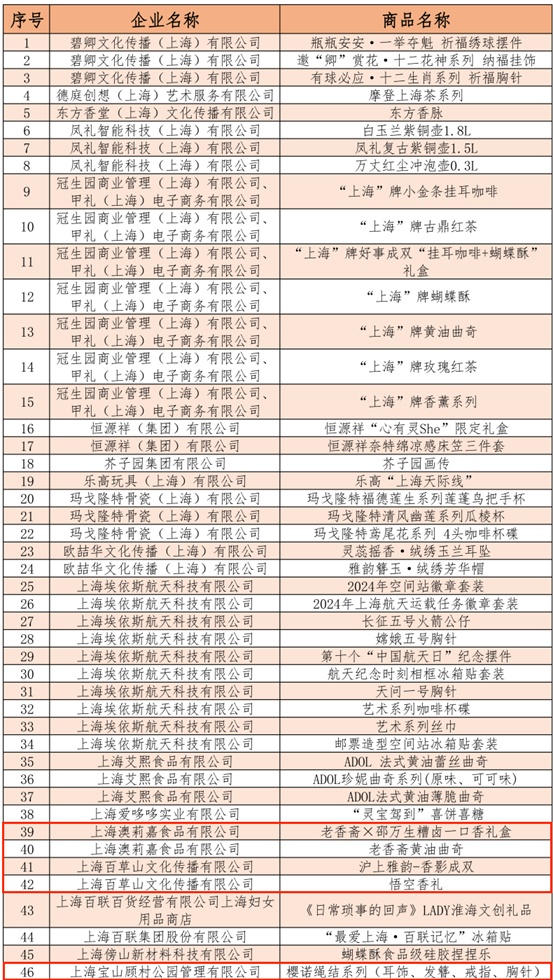 在上海市文化和旅游局的指导下,上海市商业联合会、上海市旅游行业协会联合开展了2025年“上海礼物”品牌商品评选和认定。经资质查询、企业征信、专家认证和领导小组评审,561件商品成功入选,其中文创非遗类217套/件,占比高达38.9%。 回溯2022年,当年新增“上海礼物”中非遗类商品仅5个,占比约6.7%;2024年评选中“非遗文创”已成为入围显著特点,如今占比跃升至近四成,非遗元素正稳步成为“上海礼物”的核心组成部分。这些非遗类礼物兼具非物质文化遗产的精妙传承与现代新潮设计,融合海派风情与当代审美,生动诠释上海的海纳百川。目前,“上海礼物”已在东方明珠塔、上海博物馆东馆等开设线下集合店,而宝山区也推出“宝山有礼”定海神针店等线下空间,为入选产品搭建广泛展示与销售渠道,助力文旅好物走向市场。 非物质文化遗产是中华优秀传统文化的重要载体,越来越多非遗类“上海礼物”的涌现,既是对历史文化遗产的保护与传承,更是推动文旅深度融合的重要实践,让非遗在新时代焕发新生。此次宝山区有多款特色产品入围,尽显地域风情与匠心。 “沪上雅韵,香影成双”组合包含马面裙香囊、玉兰葫芦形发簪与合香珠胸针,以上海白玉兰为元素,融入福禄寓意,香氛与配饰功能兼具,尽显温婉韵味。 “悟空香礼”以宝山长滩观光塔为灵感,按比例打造“金箍棒”线香,搭配悟空香囊、香插与地标挂件,让城市地标元素变身“可佩戴、可感知”的文化信物。 扎根宝山的中华老字号老香斋带来两款美味,与邵万生联名的“糟卤一口香”将经典脆片融入秘制糟卤,咸鲜回甘交织三重香气,呈现地道江南风味;黄油曲奇礼盒则以新西兰黄油匠心烘烤,入口即化、奶香浓郁,微咸回甘的口感平衡甜腻,带来纯粹经典的味觉享受。 这些兼具文化内涵与实用价值的宝山特色“上海礼物”,既延续了城市记忆与地域特色,又满足了当代消费需求,成为文旅融合发展的生动注脚。 2025上海礼物品牌商品 入围名单 (按拼音排序)