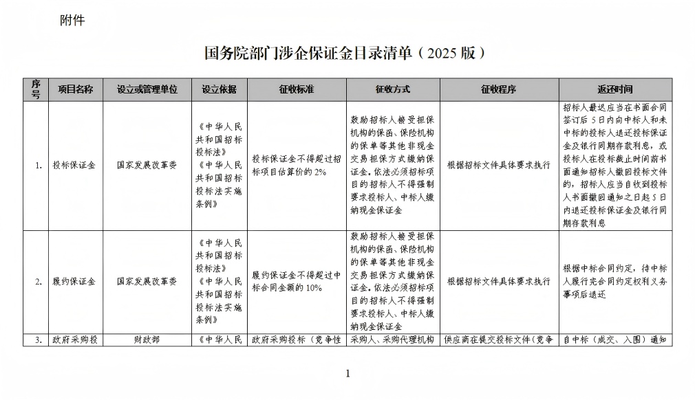 附件:国务院部门涉企保证金目录清单(2025版)
